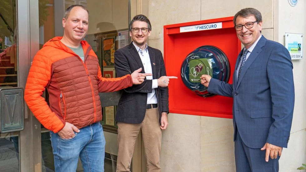 Alexander Zugsbradl, Vorstandsvorsitzender der Unternehmensgruppe HESCURO, bewertet das Gerät als äußerst lohnende Investition: „Gesellschaftliche Verantwortung bedeutet für uns, dort zu helfen, wo es wirklich zählt. Ein Defibrillator im öffentlichen Raum kann Leben retten – das unterstützen wir mit größter Überzeugung.“ Der Ort, an dem der AED platziert ist, wurde mit Bedacht gewählt: "Mit der Platzierung direkt am Rathaus in der hoch frequentierten Fußgängerzone setzen wir ein starkes Zeichen für die Gesundheit von Einheimischen und Gästen unserer Stadt. Wir danken der Unternehmensgruppe HESCURO herzlich für ihr Engagement im Sinne der Allgemeinheit", so Jan Marberg, Erster Bürgermeister der Stadt Bad Brückenau.
