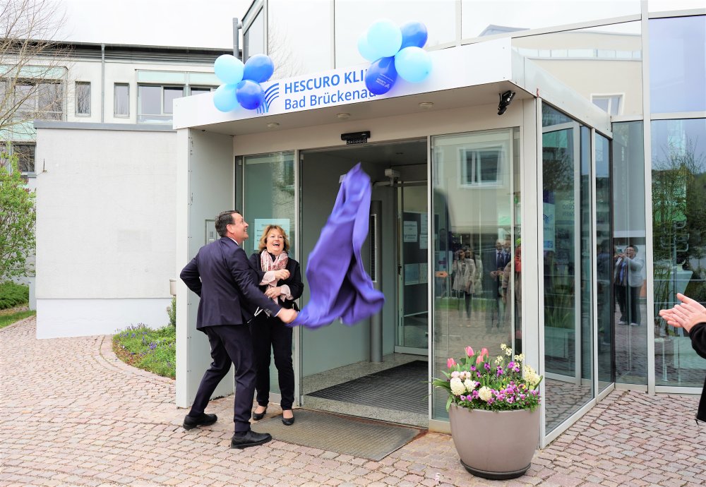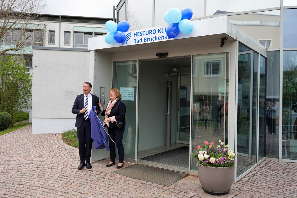 Die Franz von Prümmer Klinik gibt es nicht mehr. Seit dem 29. April 2023 trägt das Krankenhaus in Bad Brückenau nun offiziell den Namen HESCURO KLINIK Bad Brückenau. Das neue Namensschild am Haupteingang wurde von Alexander Zugsbradl, Vorstand der KLINIKEN Bad Bocklet AG, und der stellvertretenden Landrätin und Altbürgermeisterin Brigitte Meyerdiercks im Beisein einiger Ehrengäste und der Mitarbeitenden feierlich enthüllt. „Damit zeigen wir jetzt auch nach außen, ihr gehört zu uns, zur HESCURO Familie“, betonte Zugsbradl in seiner kurzen Rede.